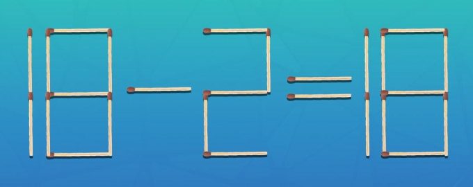 Slika ispod prikazuje jednadžbu 18-2=18 stvorenu od šibica. Očito nije točno. Vaš zadatak je pomaknuti samo jednu šibicu kako biste je popravili. A to ćete morati učiniti za samo 5 sekundi.